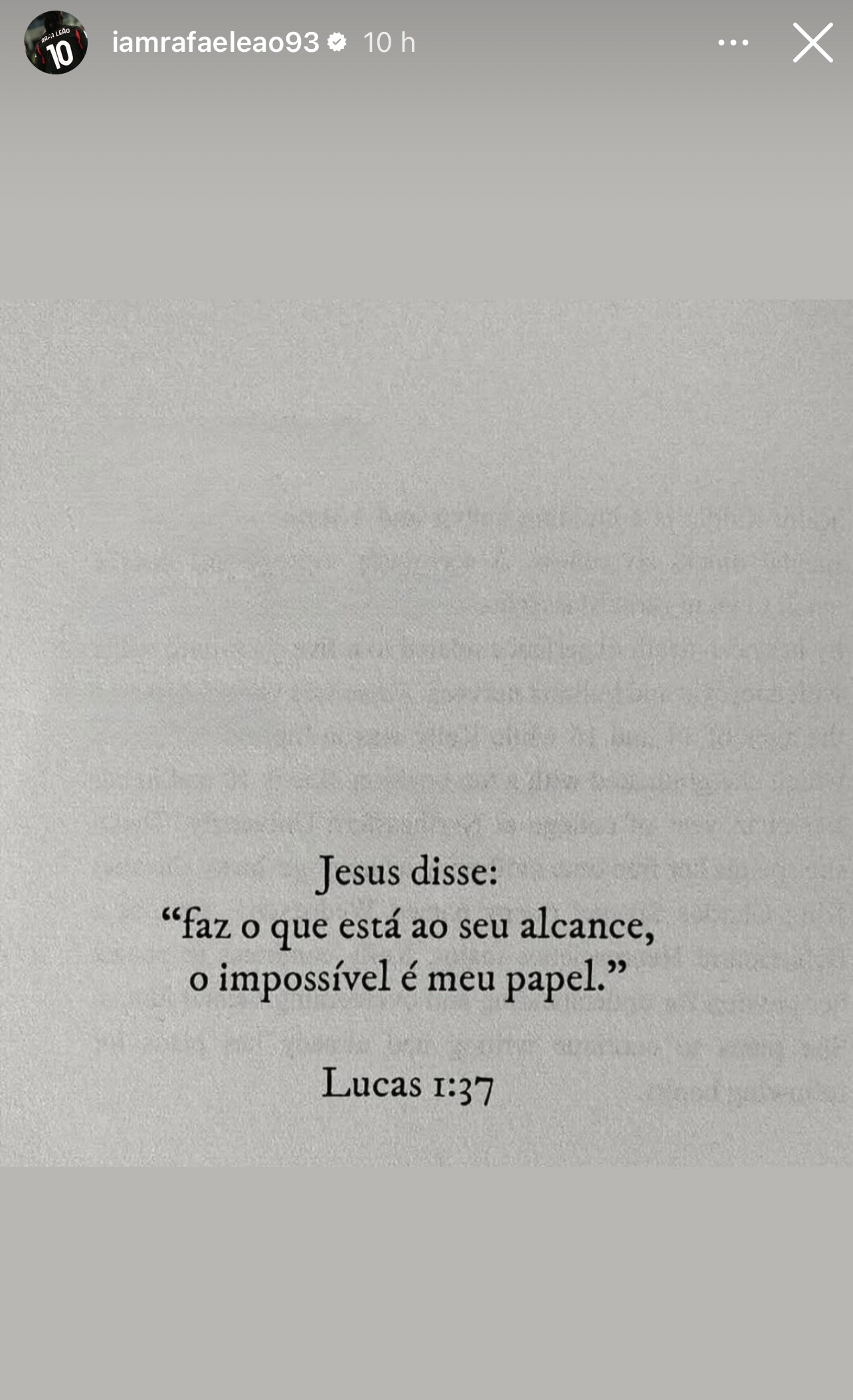 Questo recita il passo scelto da Leao: "Gesù disse: fai ciò che è alla tua portata, l’impossibile è il mio compito”. Senza dubbio si tratta del momento più complicato della stagione di Leao, frenato ripetutamente da un infortunio al polpaccio prima e da un principio di pubalgia poi.