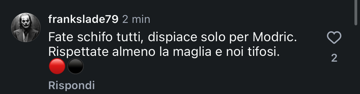 "Fate schifo tutti, dispiace solo per Modric. Rispettate almeno la maglia e noi tifosi"