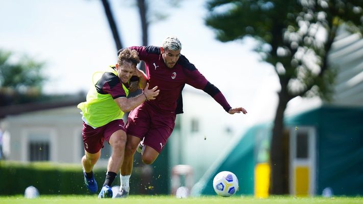 MILAN NEWS - Si è conclusa la prima settimana di allenamenti per il Milan. La squadra si è ritrovata lunedì e ha iniziato a lavorare il giorno successivo. Una prima settimana intensa, ricca di allenamenti e di fatica, ma anche di due partitelle. La prima "interna", finita 2-0 con i gol di Alexis Saelemaekers e Daniel Maldini; la seconda si è svolta oggi in famiglia, contro la Primavera. Vittoria per la prima squadra con un netto 4-1. I gol sono stati ancora di Saelemaekers, ma anche di Ante Rebic e Paquetà, oltre alla prima firma di Pierre Kalulu. Protagonista anche Theo Hernandez, che poi ha pubblicato su Twitter una foto di uno scontro di gioco con Alen Halilovic, rientrato al Milan, ma oggi aggregato alla Primavera. Eccola.
